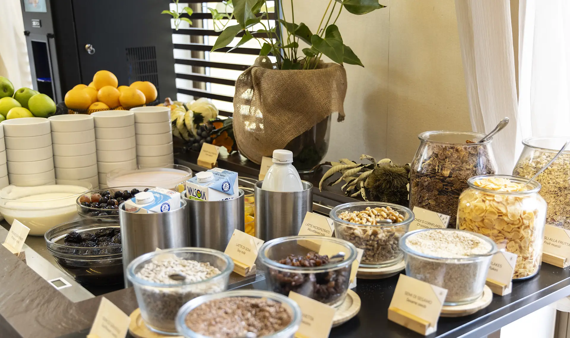 Il buffet della colazione è allestito nella nostra veranda, ampia e luminosa, dalle 7 fino alle 10: il Giardino d’inverno offre un ambiente rilassante e al contempo fonte di ricarica per affrontare al meglio la giornata.